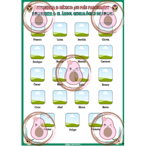 - Réalisation de l’arbre généalogique de la famille de Miguel à l’aide d’un texte descriptif. Cette activité plait énormément aux élèves car ils adorent couper, coller, ordoner..